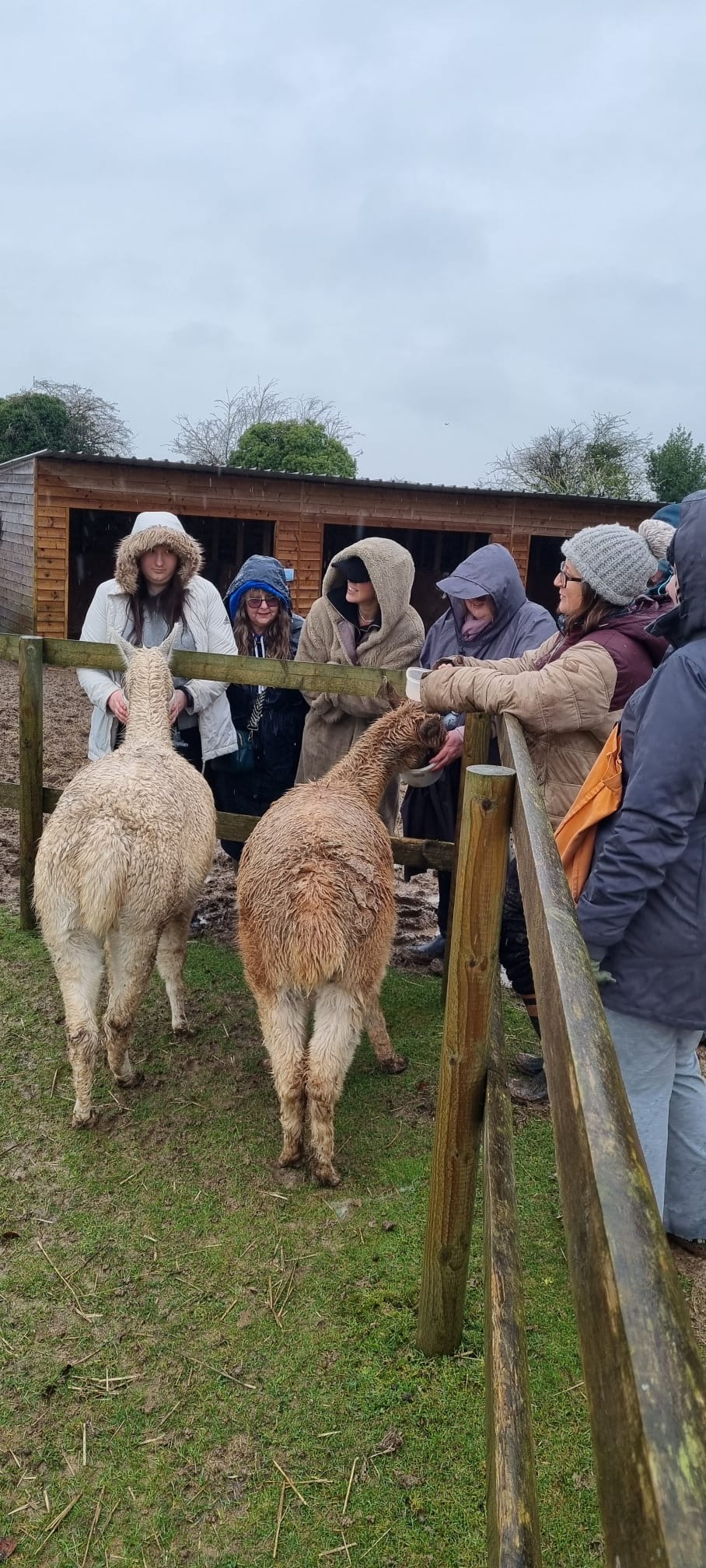 The Wellbeing Cafe group fully embraced farm life, spending time cuddling chickens, petting sheep, feeding alpacas, chatting to turkeys, grooming horses, and even collecting freshly laid eggs. Each activity offered a chance to slow down, be present, and enjoy the simple pleasures of being outdoors.