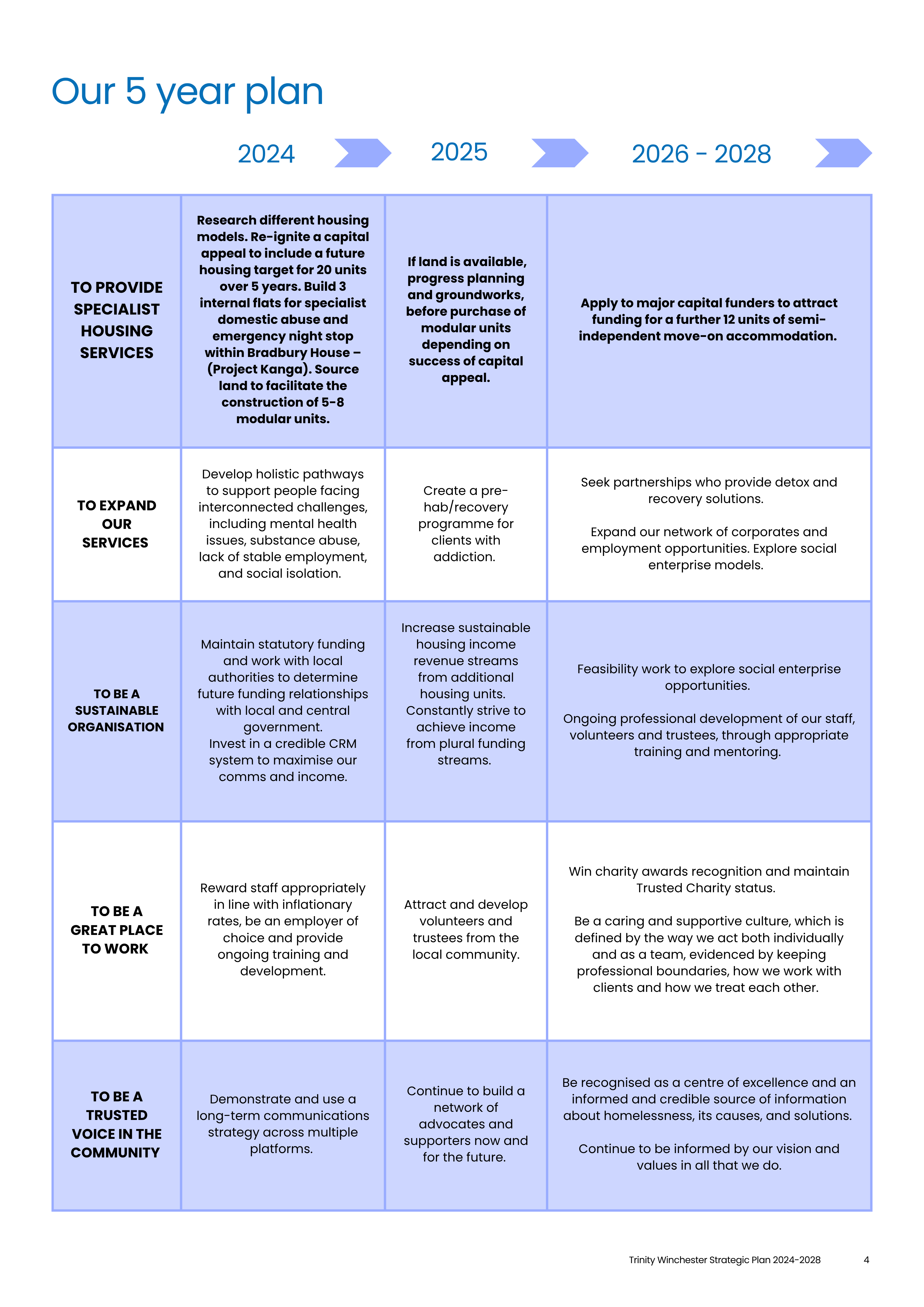 From humble beginnings, Trinity has grown into a respected and skilful organisation helping people to improve their lives. We provide vital practical and emotional support to over 640 people each year who are experiencing the effects of homelessness or vulnerability.